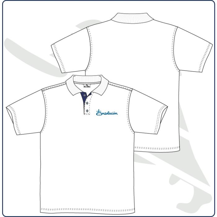 - Polo colegial de manga corta, realizado en pique con cuello y parte final de las mangas en canalé.